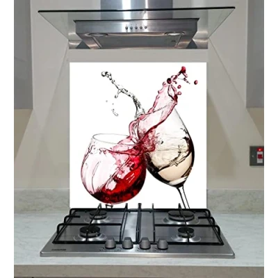 Splash back, Tempered Glass Panel Kitchen with glasses of wine on the white background, Any Size, Va Art (wide 90 x height 60 /cm)