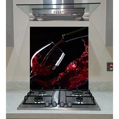 Splash back, Tempered Glass Panel Kitchen with of wine on the dark background, Any Size, Va Art (wide 80 x height 70 /cm)