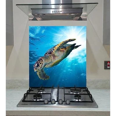 Splash back with Sea Turtle on the Blue Background, Toughened Glass, Any Size, vaartglass (wide 60 x height 75/cm)