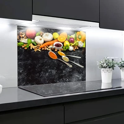 Splashback Tempered Glass Heat Resistant Toughened Decorative 90 x 65 cm 4 mm Thick Perfect Behind Gas, Ceramic and Induction Cookers Easy to Clean Hang…