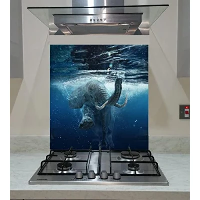 Splashback Tempered Glass Panel Kitchen Swimming African Elephant Underwater, Any Size, VA Art (wide 60 x height 80 /cm)