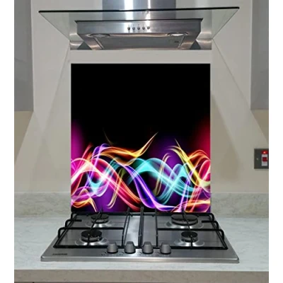 Splashback, Tempered Glass Panel Kitchen with a dolphin leaping jumping from shining sunset, sea, Any Size, Va Art (wide 90 x height 75 /cm)