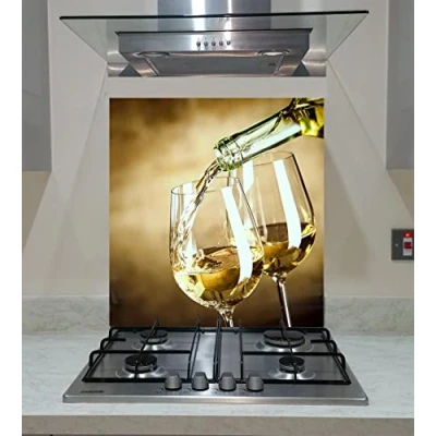 Splashback with Glasses of Wine, Tempered Glass Panel Kitchen, Any Size, Va Art (wide 90 x height 60 /cm)