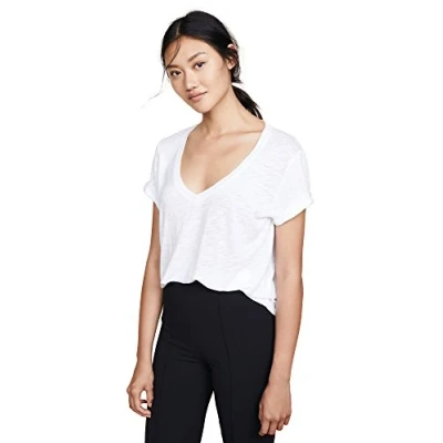 Splendid Women's Short Sleeve V Neck Tee T Shirt, White, Medium