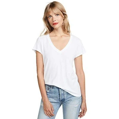 Splendid Women's Short Sleeve V Neck Tee T Shirt, White, Small