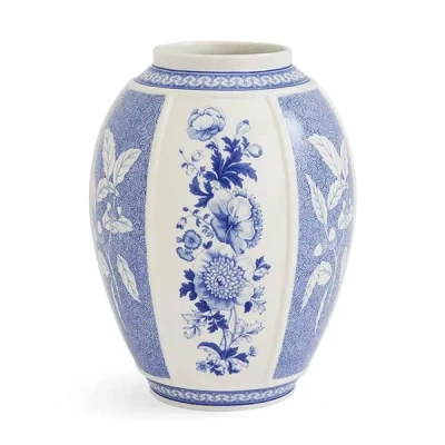 This Spode Blue Italian British Flowers Vase features a heritage floral pattern and panelled design from the Spode archive. Each section is decorated with an archival print in a timeless blue and white colourway and looks stunning on display.Perfect for showing off dried or fresh flower arrangements on a mantlepiece, bookshelf or middle of a table for an eye catching decorative piece.Made from 100% porcelain and dishwasher safe for easy cleaning.Dimensions: 25.5(H) x 19(W) x 19(D)cm.