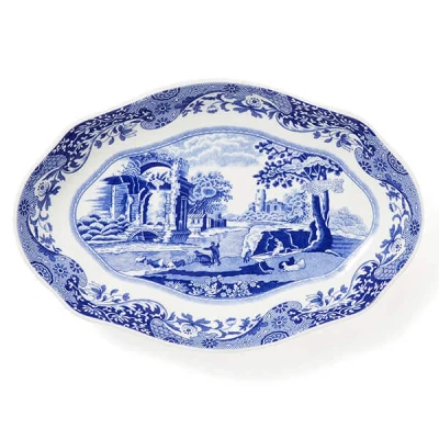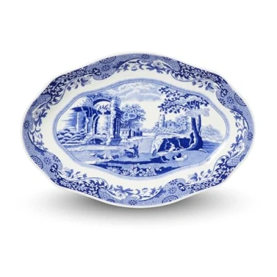 The Spode Blue Italian Fluted Oval Dish adopts the classic Spode blue and white design in which the brand is renowned for. This fluted oval dish has a unique design, capturing a historic scene inspired by the Italian countryside with an Oriental border that dates back to the 18th century.The Spode Blue Italian Fluted Oval Dish is made in the UK and is ideal for everyday use due to its durable and hard-wearing design. Despite boasting a centuries-old heritage, this fluted dish is made with modern standards in mind, and is of the utmost quality.Made from 100% Porcelain.Dimensions: 3.3 (H) x 14 (W) x 21.5 (D) cm.Oven, microwave and freezer safe.Dishwasher safe.