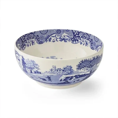 The Spode Blue Italian Round Bowl adopts the classic Spode blue and white design in which the brand is renowned for. This bowl has a unique design, capturing a historic scene inspired by the Italian countryside with an Oriental border that dates back to the 18th century.The Spode Blue Italian Round Bowl is made in the UK and is ideal for everyday use due to its durable and hard-wearing design. Despite boasting a centuries-old heritage, this bowl is made with modern standards in mind, and is of the utmost quality.Made from 100% EarthenwareDishwasher, freezer and microwave safeOven safe up to 170°C / 340°F / Gas Mark 3Dimensions: 2cm (H) x 27.5cm (W) x 27.5cm (D)
