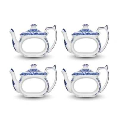 Charming Table Detail: Add character to any dining setup with these teapot shaped napkin rings, combining elegant blue and white tableware style with whimsical charm for everyday or festive meals. Decorative Napkin Holders: These decorative napkin rings are shaped like mini teapots, making them ideal for holiday table napkin holders or themed afternoon tea events. Versatile for Any Occasion: Designed to enhance both formal dining plates and bowls or relaxed brunches, these rings bring flair to seasonal napkin holders across a range of table settings. Compact Yet Eye-Catching: Measuring 2.5 inches, each napkin ring offers compact size while standing out as a modern napkin ring accent that elevates any place setting with vintage charm. Coordinate with Tableware: These elegant table napkin rings pair beautifully with mix and match tableware, making them a versatile addition to your tabletop essentials or gift sets.