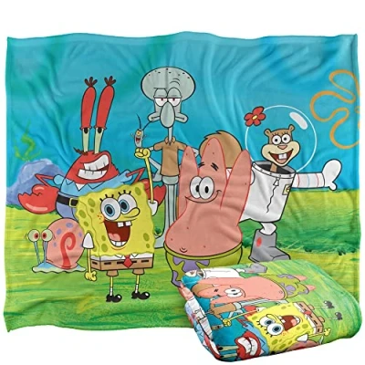 SPONGEBOB SILKY TOUCH BLANKET - 300 GSM fabric provides warmth and comfort yet is lightweight and breathable, that will make a great decorative addition to any room SHRINK & FADE RESISTANT - This design has amazing color vibrancy and is crafted from 100% polyester that is super soft and long lasting SIZE: 152 x 127 cm - Microfiber fleece fabric with double overlock stitch to create ultra-fluffiness and durability; machine washable; tumble dry low The designs are created by our incredibly talented in house graphic art team who often hand draw and illustrate each design GREAT FOR GIVING - The optimal gift for the littlest fan in your life, our high quality collectible merchandise brings the finishing touch to themed events, parties, birthdays, holidays, baby showers, and special occasions