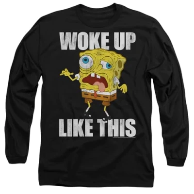 Spongebob Woke Up Like This Meme Mens Long Sleeve T Shirt, Black, Large