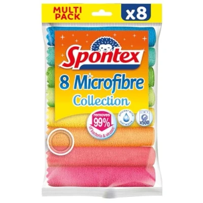 Spontex Microfibre Cloths For Cleaning 8 Collection Use as Dusters, Dish & Kitchen Towels 30 x 30cm Assorted Colours 16 Count