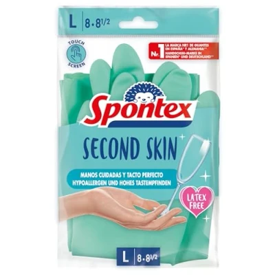 Spontex Second Skin Sensitive Nitrile Gloves With White Tea Extract Size L Turquoise