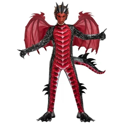 Black and dragon Costume for Boy Kids Deluxe Set. Includes a mask, pair of wings, jumpsuit, pair of gloves, and a pair of shoe covers. Dragon jumpsuit Child Costume for Halloween Dress Up. Super durable and made of Higher quality material. 100% Polyester. Super Value Pack for Role Play. Perfect for Kids Dragon Role Role Playing, Halloween Dress-up. Intrigues Kids' Imaginary Abilities. Halloween Dress Up Parties, Festivals, Themed Party Costumes, Fantasy Adventure Themed Party, Fairy Tale Themed Party, Everyday Play, and More. Hand Wash Cold. Machine Washable. Line Dry. Do Not brighten. Safety Test Approved. Easy to Wear, Unique Halloween Costume for Kids Fantasy Adventure Themed Party. Instaworthy Halloween Costume Contest Idea! Add Lots of Fun to Your Halloween Party and Other Theme Activities. Size: Toddler (3–4 yrs), Small (5–7 yrs), Medium (8–10yrs), Large (10–12yrs) and X-Large(12–14yrs)., Manufacturer: Joyin US Corp