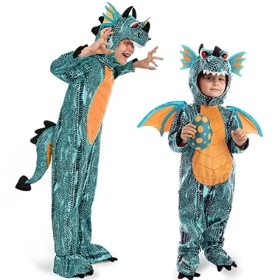 Spooktacular Creations Halloween Child Unisex Blue Dragon Costume Deluxe Dinosaurs Set for kids Toddler Infant Trick or Treating Party, Dress Up 3T