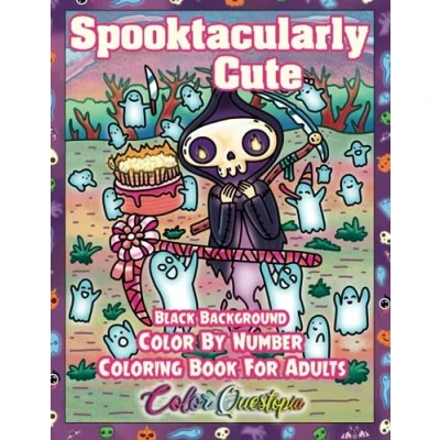 Spooktacularly Cute Halloween Color By Number for Adults BLACK BACKGROUND: Numbered Designs Scary Fun Times