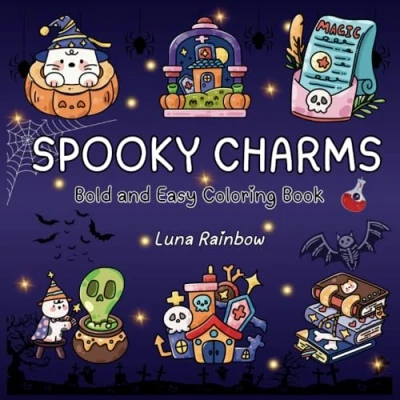 Spooky Charms: Bold and Easy Coloring Book for Adults Teens Featuring Cute Creepy Creatures in Cozy Hygge Moments Relaxation Stress Relief