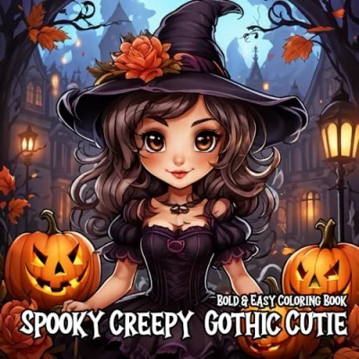 Spooky Creepy Gothic Cutie: Simple Bold & Easy to Color Designs Adorable Charming Cute and Goth Creatures Halloween Coloring Book for Kids Teens Adults Seniors Stress Relief Relaxation