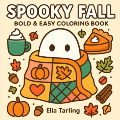 Spooky Fall Bold & Easy Coloring Book: 40 Cute Simple Autumn Halloween Designs for Kids Adults