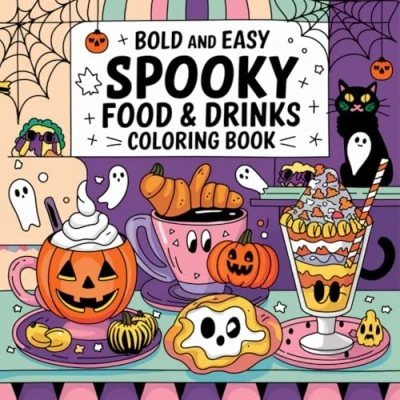 Spooky Food & Drinks Bold and Easy coloring book: 51 Simple Images For Kids Adults (Bold books)