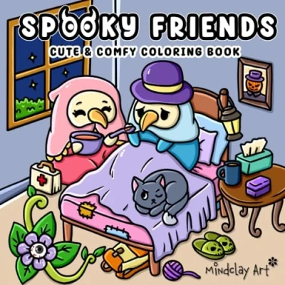 Spooky Friends Coloring Book: for Adults & Teens, Featuring Cute and Cozy Creepy Characters in Hygge Moments Relaxation Stress Relief