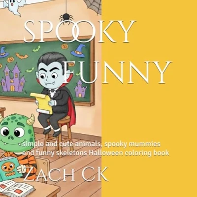 spooky funny: simple and cute animals, mummies funny skeletons Halloween coloring book