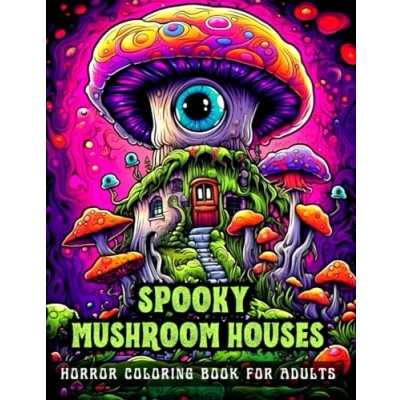 SPOOKY MUSHROOM HOUSES HORROR COLORING BOOK for ADULTS: 50 Scary Illustrations Relaxation, Stress Relief and Inner Peace