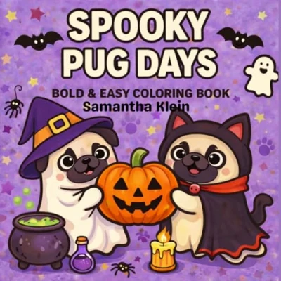 Spooky Pug Days: Cute & Cozy Halloween Bold Easy Coloring Book for Kids Adults