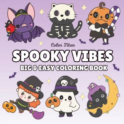 Spooky Vibes: Big & Easy Coloring Book for Adults, Teens and Kids Featuring Cute Creepy Items Adorable Characters, Simple Designs Relaxation