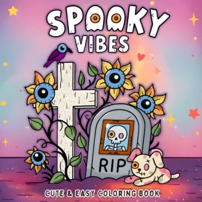 Spooky Vibes: Creepy Cute Characters and Cozy Hygge Scenes Easy Halloween Coloring Book for Adults Teens to Relax Relieve Stress