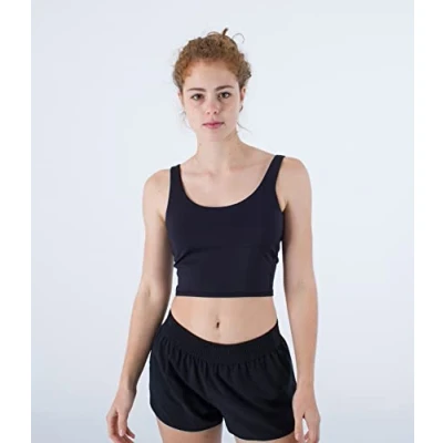 Amazon Clean finish scoop front neck crop tank with a low v back Floating shelf bra with Varitex stabilizers at center front for added support Perforated quick dry removable cups Features our signature eco fit fabrication Hurley icon heat transfer Medium impact bra 17 3/4” HPS