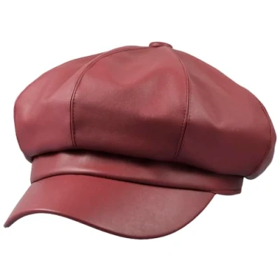 Sportmusies 8 Panels Newsboy Caps for Women, PU Leather Cabbie Painter Hat Gatsby Ivy Beret Cap, 03red, One Size