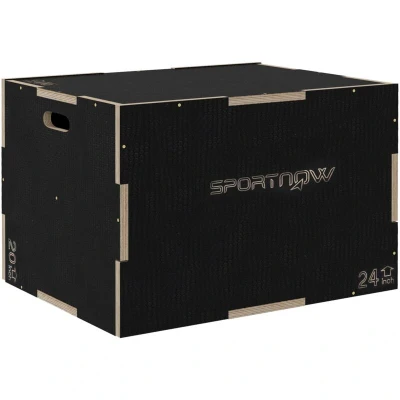 ManoManoGeneral description Exercising at home or at the gym is now easier than ever with the SPORTNOW 3-in-1 Wooden Plyo Box. This versatile step-up box allows you to perform countless exercises for any fitness routine, including step-ups, squats, and more. With three adjustable heights, it caters to all skill levels, providing a wide range of conditioning exercises. Technical specifications Colour: Black Material: Beech wood Overall dimensions: 51H x 76L x 61W cm Handle dimensions: 10L x 3.5W cm Weight capacity: 120 kg Height options: 51 cm, 61 cm, 76 cm Installation Assembly required Usage Improves agility Enhances cardio Builds body strength Increases jumping ability Boosts explosiveness