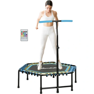 Sportnow 45'' Fitness Trampoline with Adjustable Handle, led Lights, Blue'