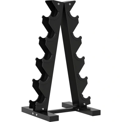General description Organise your workout space with the SPORTNOW Five-Tier Weight Tree. This steel dumbbell rack stand includes 10 racks for five pairs of dumbbells, keeping them neatly arranged and preventing clutter on your floor. Its solid and durable steel construction, along with wide feet, ensures stability and prevents weights from falling off, creating a secure and orderly workout zone. This compact design fits easily into a corner, allowing ample space for your exercise routine. Technical specifications Colour: Black Material: Steel Dimensions: 66H x 35L x 33W cm Suitable for dumbbells with an 8 cm handle or longer Weight capacity: 100 kg Other information Item label: A91-289V00BK Features: 10 racks for five pairs of dumbbells, plastic inserts to prevent damage to dumbbells, durable steel construction, wide feet with non-slip pads for stability, assembly required