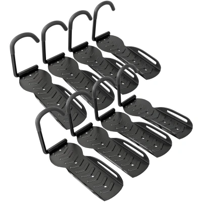 General description Transform your garage with the SPORTNOW garage bike rack, a set of eight wall-mounted bike hooks designed for a neat, space-saving solution. Crafted from strong, rust-resistant metal, each rack supports up to 30 kg, ensuring your bikes are secure. Plus, they easily fold away for compact storage, making them an essential addition to any cycling enthusiast's garage. Technical specifications Colour: Black Material: Metal Overall Dimensions: 25.5L x 10.5W x 4H cm Weight Capacity: 30 kg (each rack) Item Label: AA0-109V00BK Installation Includes secure fixing holes and necessary installation fixings Installation process is straightforward and quick Usage Suitable for garage, shed, or outdoor use Enhances area neatness, freeing up floor space