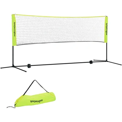 General description For all those who are into fitness, training, and having fun with friends, this SPORTNOW portable badminton net is just the thing for you. Adjustable to three different heights to suit the play, the two-piece metal frame is strong and reliable. You'll effortlessly attach the long net to the frame, making it a quick and simple setup – be it your garden, park, or beach. Plus, its convenient carry bag ensures you're always game-ready. Technical specifications Colour: Black and yellow Material: Metal, PE, and Oxford fabric Overall dimensions: 107-155H x 310L x 103W cm Net dimensions: 310L x 72W cm Mesh size: 4L x 4W cm Item label: A95-008V00YL Adjustable height: 107-155 cm Usage Suitable for badminton, tennis, pickleball, and volleyball Quick setup with side sleeves Stable feet at the bottom for added stability Other information Carry bag included
