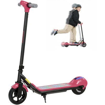 Kick-to-start motor: This kids e-scooter requires a push to 5 km/h before the motor activates for a steady, controlled launch. Powered by a 110W brushless motor, it delivers a smooth, stable ride with manually adjustable speeds up to 10 km/h Comfortable, confident rides: This kids scooter features 6.5" airless rubber tyres that absorb vibrations for a smoother journey, while the responsive handbrake brings it to a quick and controlled stop RGB lighting: Side RGB lights in red, blue and yellow on this e scooter pair with a bright white front light to boost visibility. The colourful glow stands out, letting kids ride with style and confidence Clear LED display: A handlebar-mounted screen on this electric scooter for kids shows speed and battery level, helping riders manage their journey and know when it's time to recharge Lightweight and portable: Weighing just 6.8 kg, this e-scooter is easy to carry and store. Product information: Overall Dimensions: 80W x 34D x 89H cm. Weight Capacity: 50 kg. No assembly required.