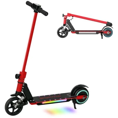 SPORTNOW Folding Electric Scooter for Kids Age 6 14 with Dual Brakes, Front Suspension, LED Colourful Lights and Display, 6.8kg Lightweight Aluminium E Scooter, Up to KM/H & KM, Red