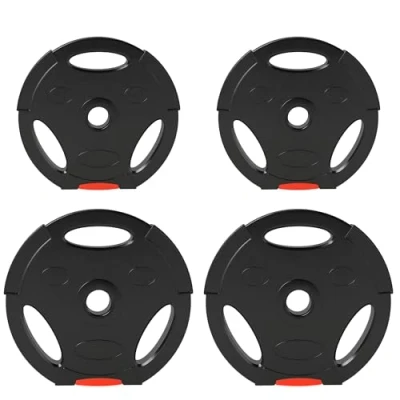 AmazonComplete weight set: Comes with two 5kg and two 2.5kg plates – great for mixing up your training, with or without a barbell. Standard fit: Each plate has a 2.5cm centre hole, compatible with most standard barbells for easy setup. Thick cover: Solid polypropylene helps shield floors from damage during drops. Three built-on grip holes: Lets you use the plates solo, suitable for exercises like shrugs, twists and more. Dimensions: Φ27 x 4.5cm and Φ24 x 3.5cm. No assembly required.