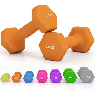 SPORTNOW Set of 2 Hex Dumbbells, Neoprene Weights Pair with Non Slip Grip, Home Gym Fitness Training Equipment, x 1.5kg, Orange