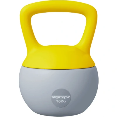 SPORTNOW Soft Kettlebell, 10kg Kettle Bell with Non Slip Handle for Home Gym Weight Lifting and Strength Training, Yellow Grey