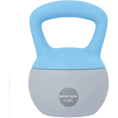 SPORTNOW Soft Kettlebell, 12kg Kettle Bell with Non Slip Handle for Home Gym Weight Lifting and Strength Training, Light Blue Grey