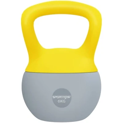 SPORTNOW Soft Kettlebell, 6kg Kettle Bell with Non Slip Handle for Home Gym Weight Lifting and Strength Training, Yellow Grey