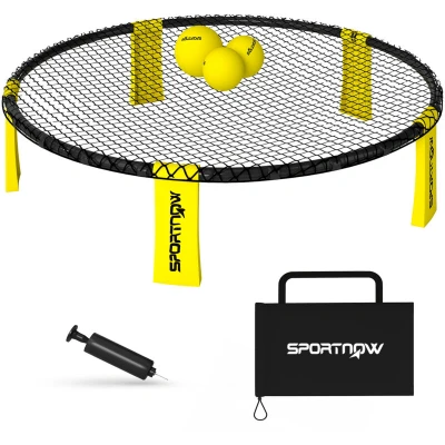 Unleash endless fun with the SPORTNOW spike game set! Its foldable legs ensure stability during play and tuck away for easy storage in your trunk or cupboard. Crafted with a high-elastic polyester fabric net, it remains taut for vigorous games. Excellent for lively gatherings at the beach or in the garden, this ball games set is a must-have for spirited family and friends' outings. Specifications: ● Colour: Yellow, Black ● Materials: Plastic, Polyester ● Overall Dimensions: Ф92 x 20H cm ● Ball Size: Ф13 cm, Ф9 cm ● Item Label: A71-052V00YL Features: ● Foldable legs ensure stability during games and easy storage ● High elastic polyester fabric net remains tight during play ● Great for family fun in yards, beaches, or camping trips ● Kit includes three balls, rim, round net and ball pump ● Portable with carry bag for easy transport and storage ● Assembly required