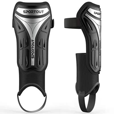 Sportout Kids Youth Adults Football Shin Guards with Protective Hard Shell,Offers Comprehensive Protection for Your Kids' Legs. (S, Black 1)...
