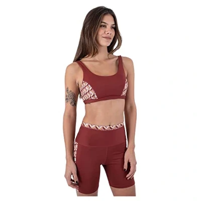 Clean finish scoop front and back sport bra Varitex stabilizers at center front and side wings for added support Soft wide underband for added comfort Perforated quick dry removable cups Features our signature eco fit fabrication Hurley icon heat transfer Low impact bra 12” HPS