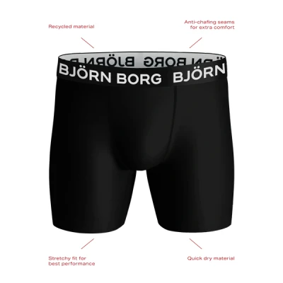 The Björn Borg Sports Microfiber Boxer 1-pack for men are made from soft recycled polyester stretch quality fabric. Featuring functionality that wicks moisture away from the skin to keep you dry. They have the perfect fit for better performance, smooth seams and elastic to avoid chafing, and a soft elastic logo waistband in microfibre for extra comfort. Note: Sports Microfiber Boxer was previously named Performance Boxer. * Recycled material * High performance and moisture-wicking functionality * Perfect fit and smooth seams * Microfibre elastic waistband * Pack of one