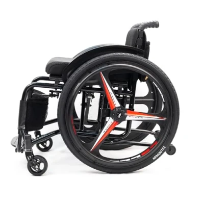 Robust Aluminum Frame: This sports wheelchair is constructed with a premium aluminum frame, ensuring durability and sturdiness for long-lasting use during various athletic pursuits. One-Click Detachable Magnesium Alloy Wheels: The wheelchair is equipped with easily detachable magnesium alloy wheels, allowing for quick and convenient transportation and storage. Flip-Up Footrest: The integrated flip-up footrest offers versatility and ease of use, providing comfort and convenience for users. Enhanced Safety Features: The wheelchair is designed with anti-tip rear wheels and dual brakes on both sides, offering enhanced safety and stability during outdoor activities. Breathable Comfort Seat and Large Storage Bag: The wheelchair features a breathable and comfortable seat for extended use, and it also includes a spacious storage bag for carrying personal belongings.