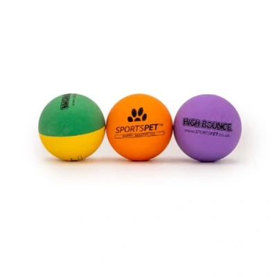 SPORTSPET High Bounce Natural Rubber Dog Balls (3 Pack Bounce) (60mm)